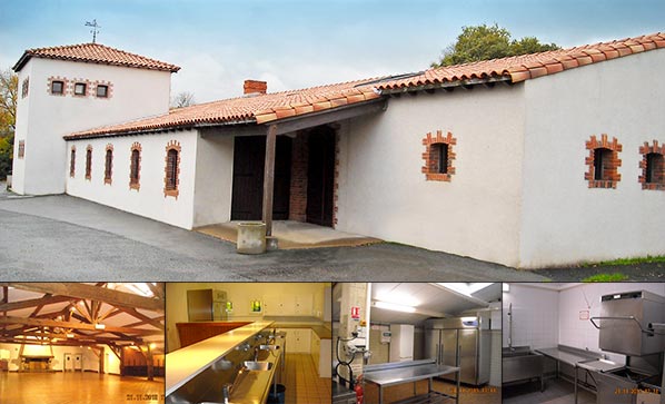 Equipements » Salle de réception en parquet de 300 m² avec estrade » Hall d’entrée avec bar équipé d’une chambre froide » Cuisine équipée : 2 fours, 1 plaque 4 feux, 1 réchauffe plats, 1 chambre froide et 1 congélateur » Un espace plonge avec lave-vaisselle » Pas de vaisselle